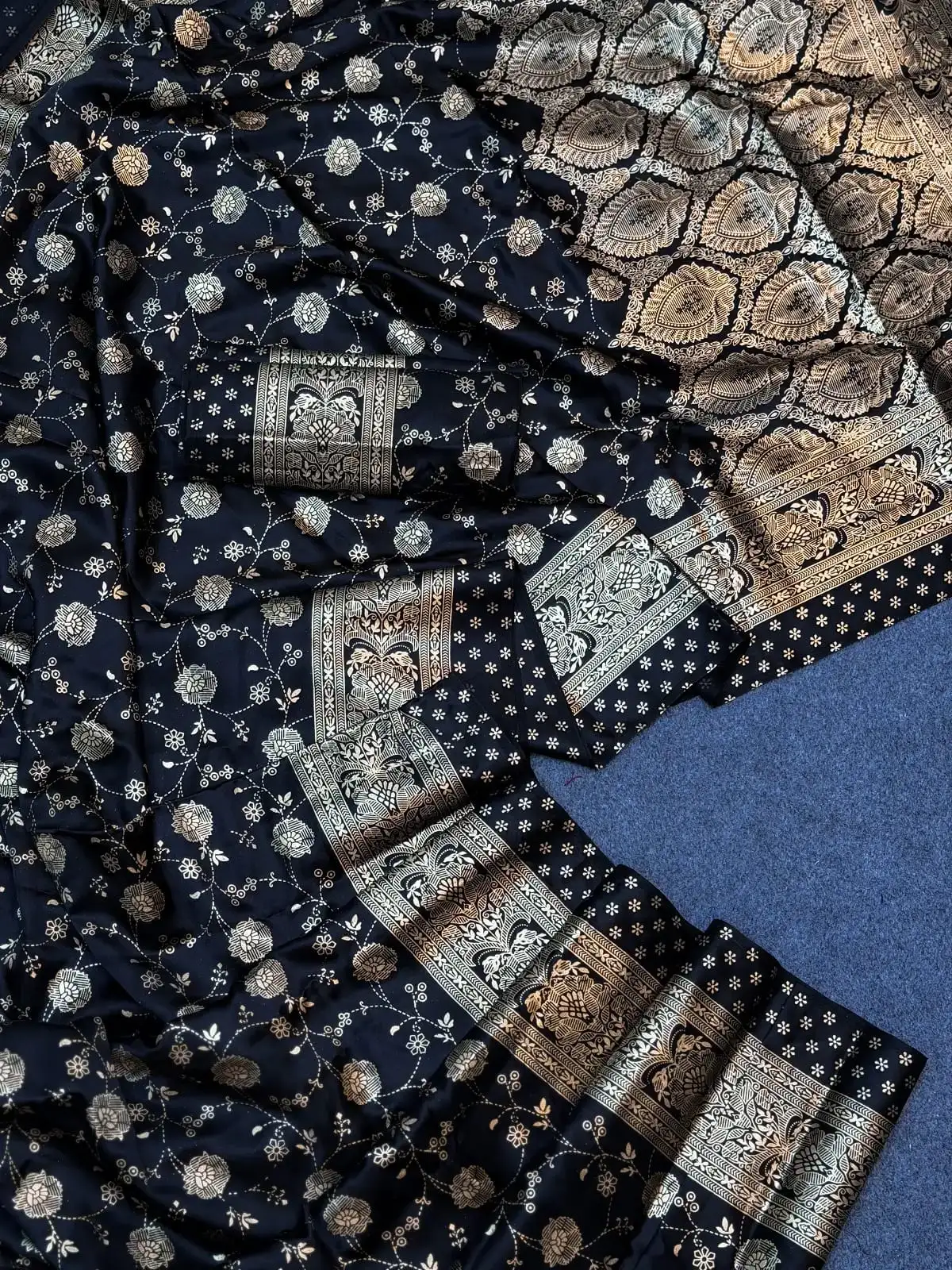 অরিজিনাল বেনারসী সিল্ক শাড়ি এবং ব্লাউজ পিস Black 08