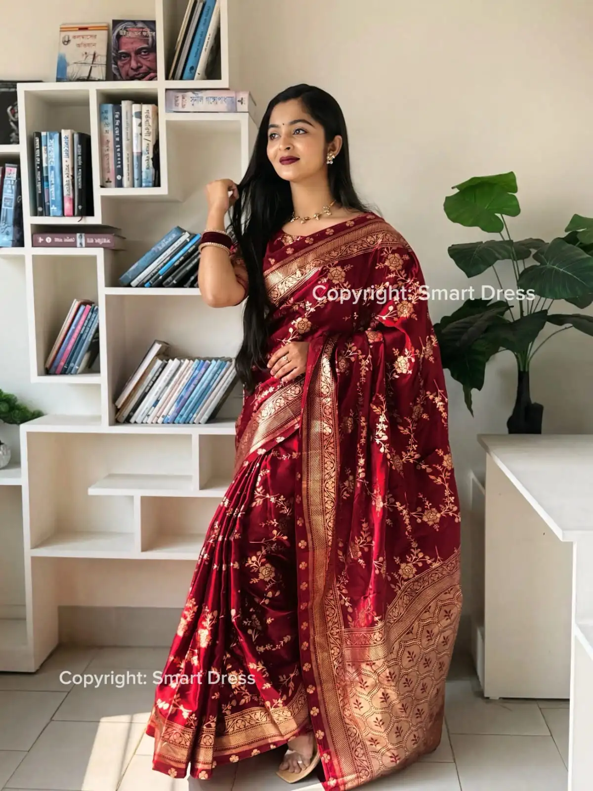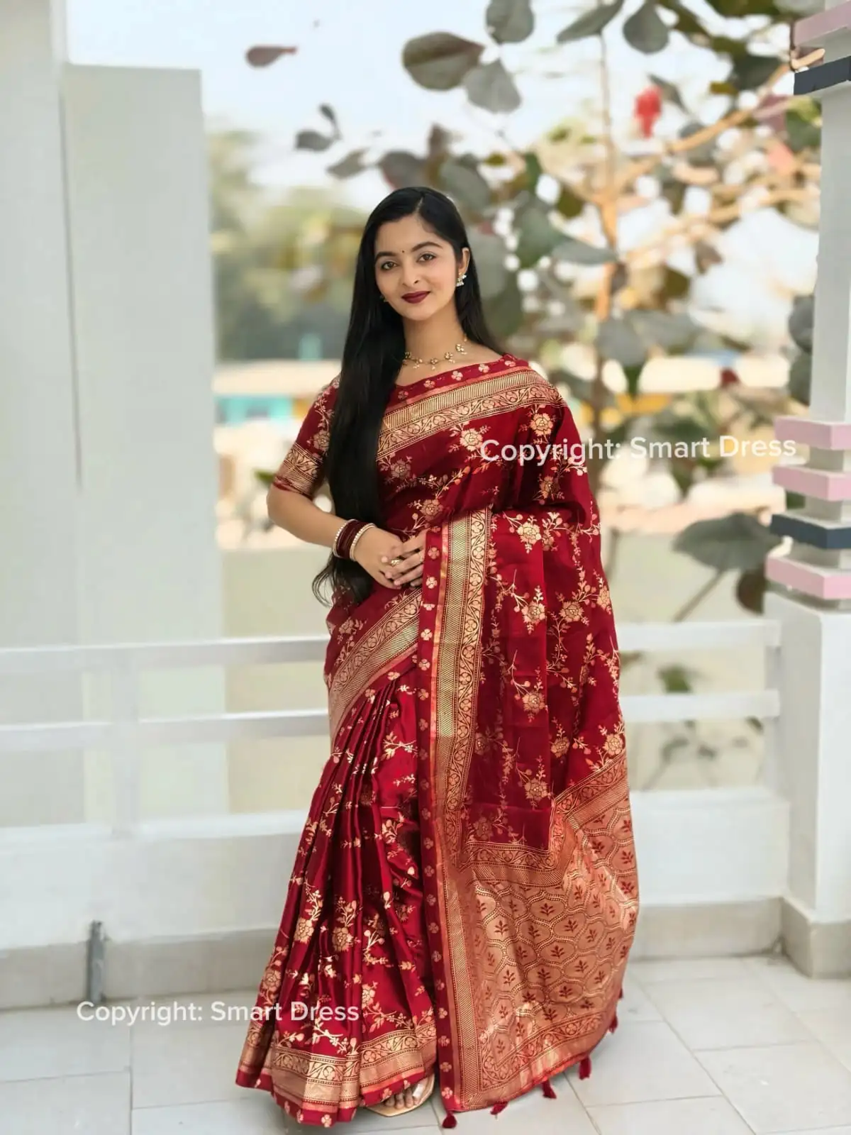 অরিজিনাল বেনারসী সিল্ক শাড়ি এবং ব্লাউজ পিস Meroon 09