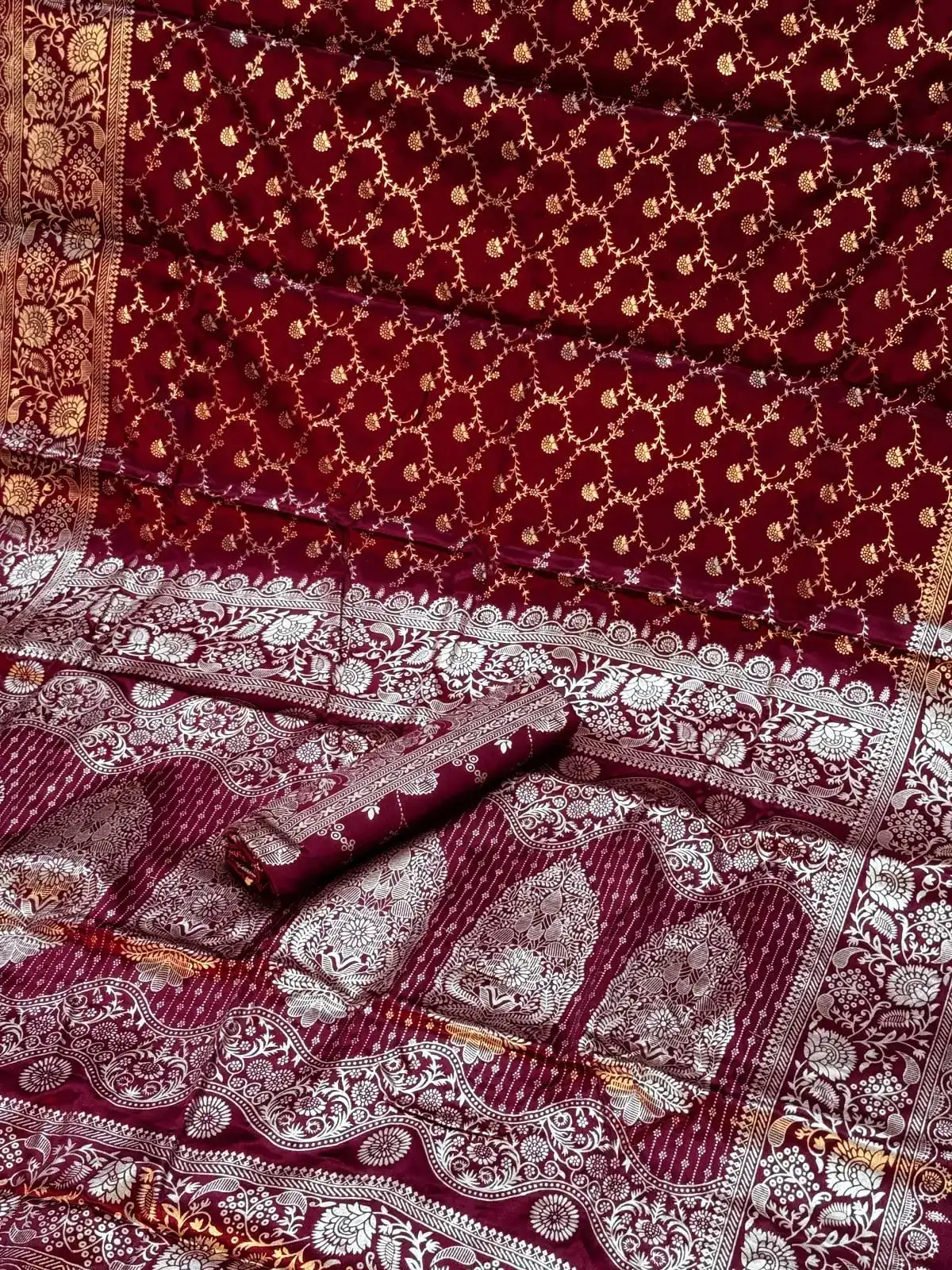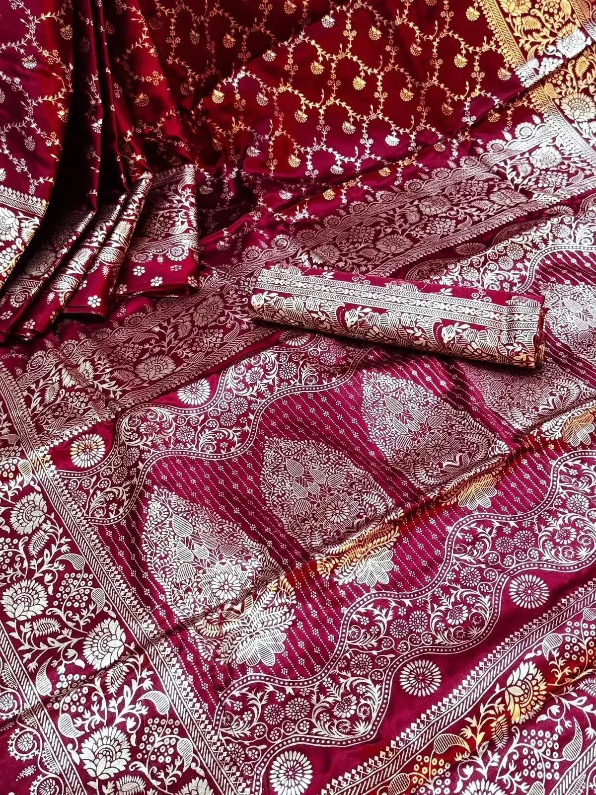 অরিজিনাল বেনারসী সিল্ক শাড়ি এবং ব্লাউজ পিস Meroon 10
